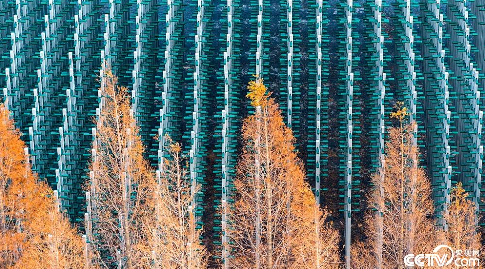 山东省青岛市西海岸新区唐岛湾畔,网红打卡地啤酒瓶森林的三万只塑料啤酒瓶在冬风中绿意盈盈,绽放着别样生机。