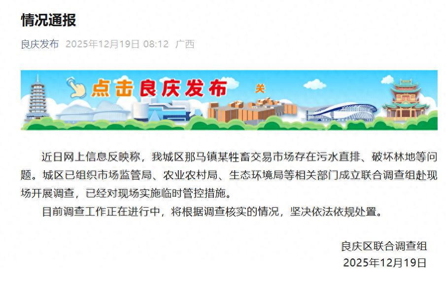 ·广西南宁通报“某牲畜交易市场存在污水直排、破坏林地等问题”:已对现场临时管控。