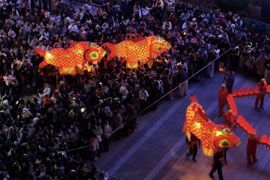 12月20日,在安徽省合肥市徽园,歙县瞻淇鱼灯、许村板凳龙等徽州民俗轮番展演,吸引众多市民到场围观,感受民俗魅力。
