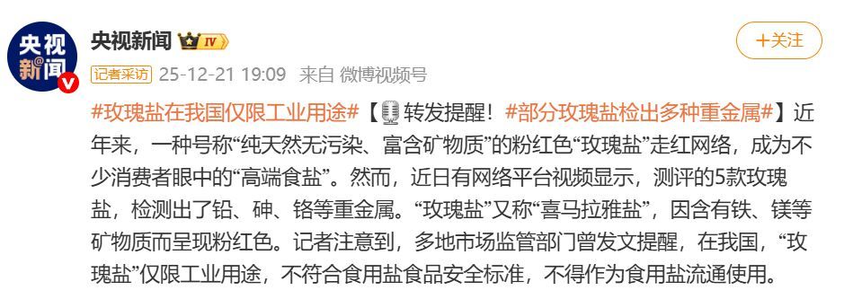 补充矿物质的效果远不及牛奶、蔬菜等天然食材。另外,‘玫瑰盐’作为天然岩盐,如果未经严格提纯,可能含铅、砷、铬等,存在潜在的重金属污染,长期摄入可能引发健康风险。