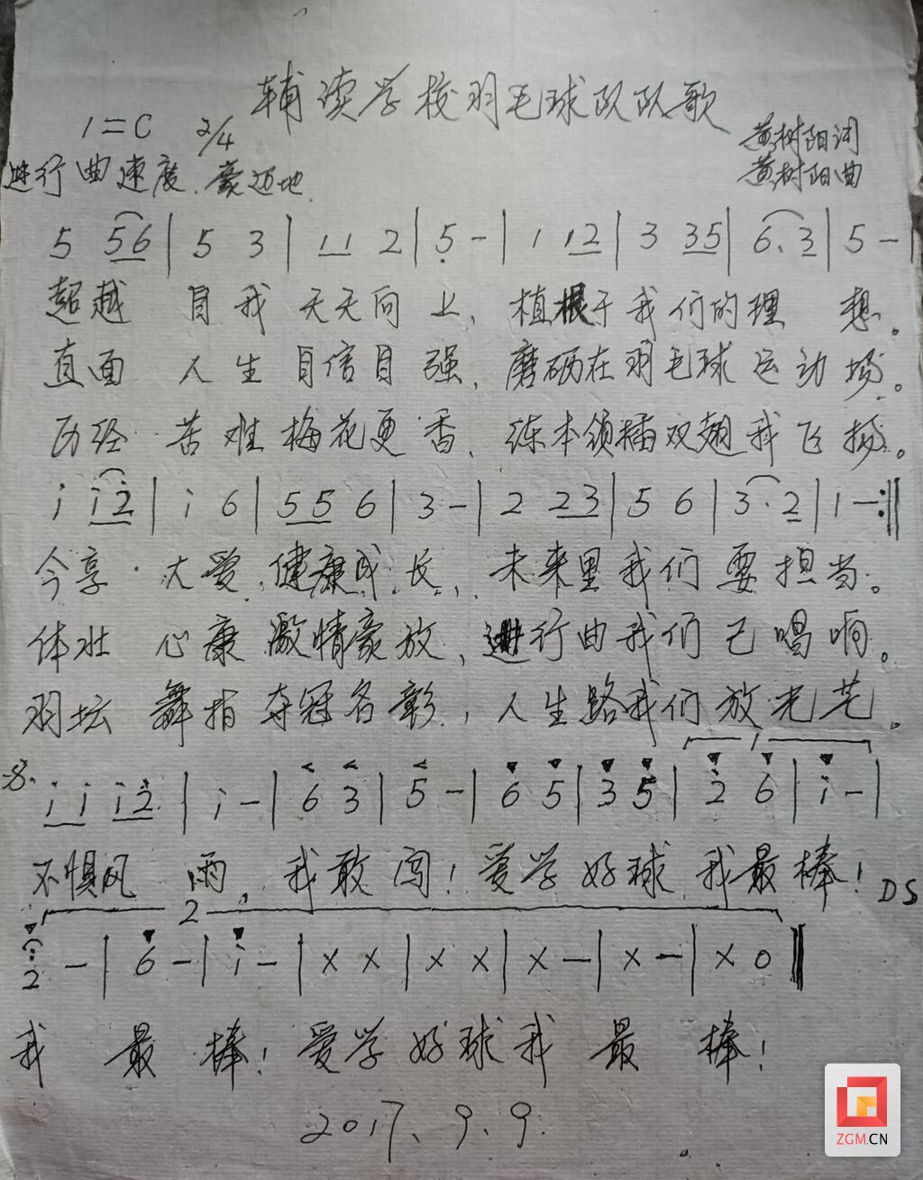后来的日子里,黄树阳自己作曲作词,写出了《辅读学校羽毛球队队歌》,孩子们至今都还在传唱。同时,他积极发动募捐,许多热心人士纷纷送来球拍、文体用品等。学校也给予大力支持,为孩子们准备队服、规划新的羽毛球场地。“我想给孩子们带来快乐。”是黄树阳的心愿,也是他与特奥羽毛球结缘的初心。