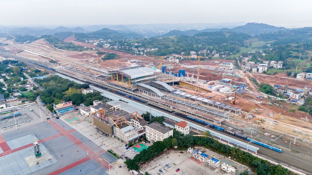 在成达万高铁遂宁站站房及相关工程施工现场,塔吊林立、机器轰鸣,工人们正抢抓工期、加紧建设。目前,遂宁站北站房主体工程已顺利完工,室内外装饰装修工程有序推进,预计2026年9月底前即可投入使用。
