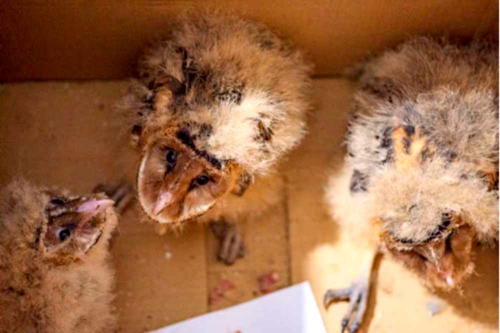 最近,泸县太伏镇村民李某在山间劳作时听到异响,又发现了三只需要救助的猴面鹰幼鸟,随即便送往了专业机构。