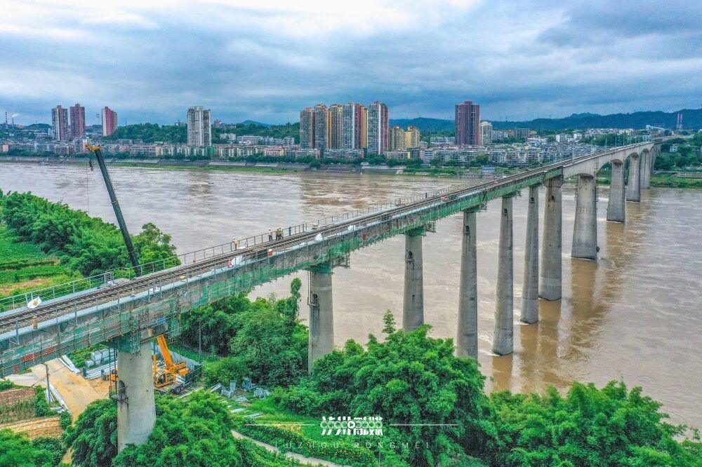 2025年8月29日,隆泸叙铁路有序推进,40多名工人正利用铁路“天窗期”紧张施工,对隆黄铁路既有泸州长江铁路大桥铁路线更换桥面钢轨及轨枕。这是该桥自2002年建成以来首次大型升级改造。