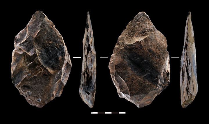 皮洛遗址的考古探方里,一件手斧刃口依然锋利。这是一种非常漂亮、极具辨识度的石质工具,像水滴,也像杏仁。