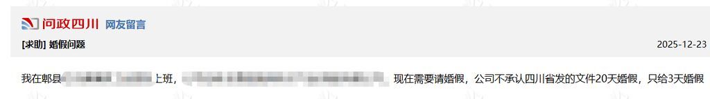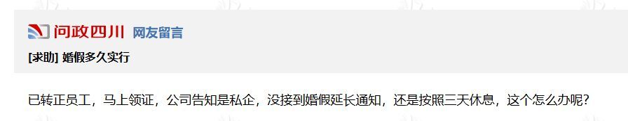 “我们事业单位也说没接到上级通知,不让休20天婚假。”