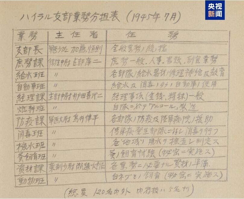 笔供中明确了海拉尔支队编制约120人,表面承担防疫、水过滤设备维护等任务,实则以白鼠养殖、跳蚤培育为核心机密工作。海拉尔支队设立初衷为“对苏联细菌战的前进据点”。