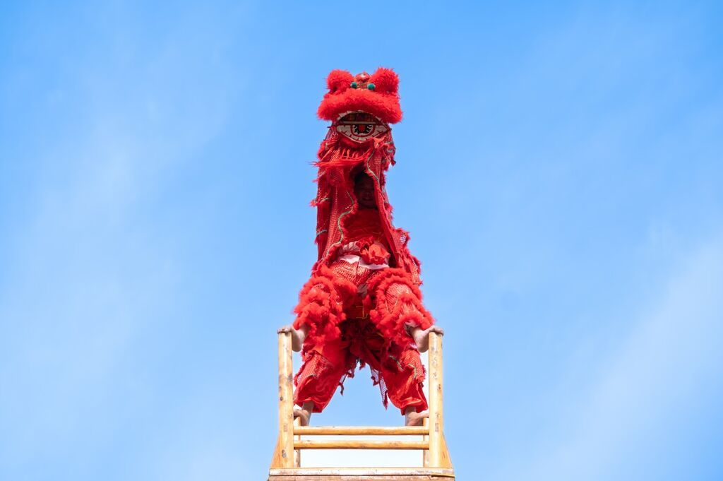 从此,他开始了白天理发、晚上舞狮的双重生活。扎马步、倒立、跳桌,赤脚在倒扣的桌腿上练习站立与移动。从一张桌子到三张桌子,再到五张、十二张。训练从地面开始,经过上千次的练习,才能上高空,“脚板心全是茧子”。半路出家的他,付出了超乎常人的努力。