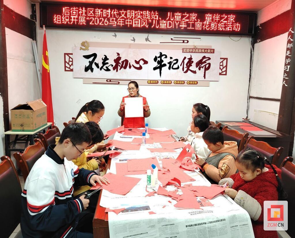 临近元旦,为弘扬中华传统文化,营造欢乐祥和的节日氛围,12月28日,富顺县富世街道后街社区新时代文明实践站联合社区儿童之家、童伴之家共同组织开展了“2026马年中国风”儿童DIY手工窗花剪纸活动。活动吸引了辖区内10余名留守儿童热情参与。