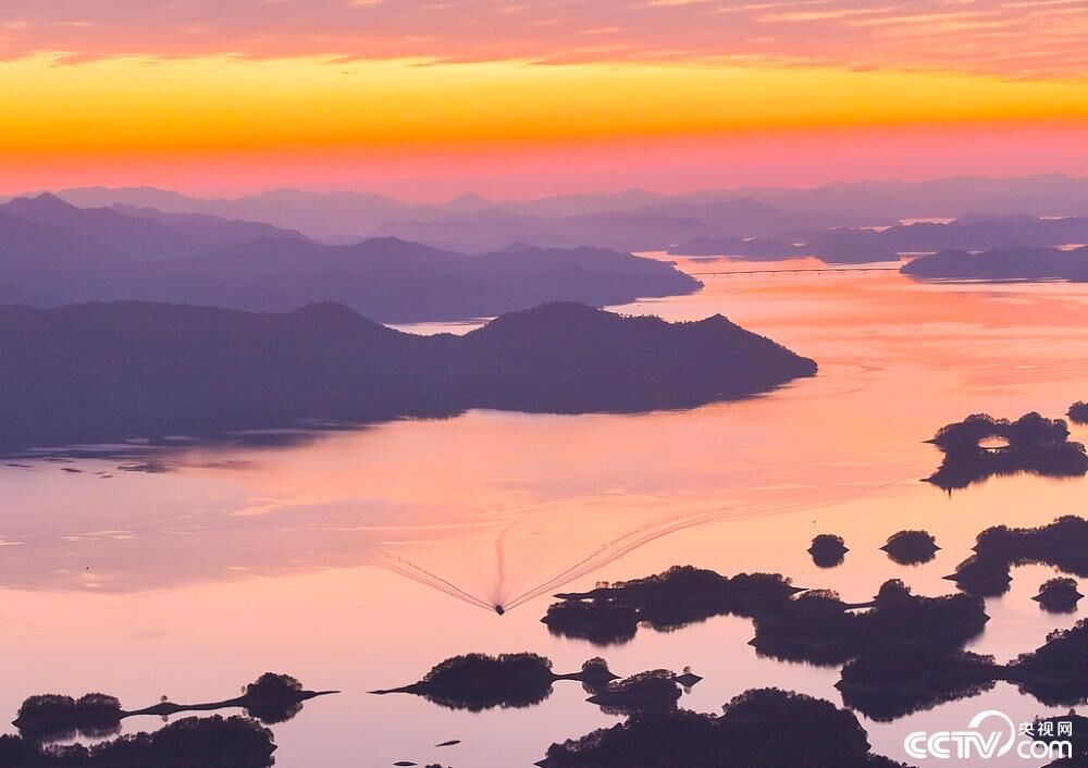 12月29日傍晚,千岛湖被漫天红霞温柔包裹,成了一幅流动的油画。橘红、绯红、玫紫的霞光层层铺展,倒映在澄澈湖面,波光粼粼与霞影交织,分不清是天入湖还是湖连天。