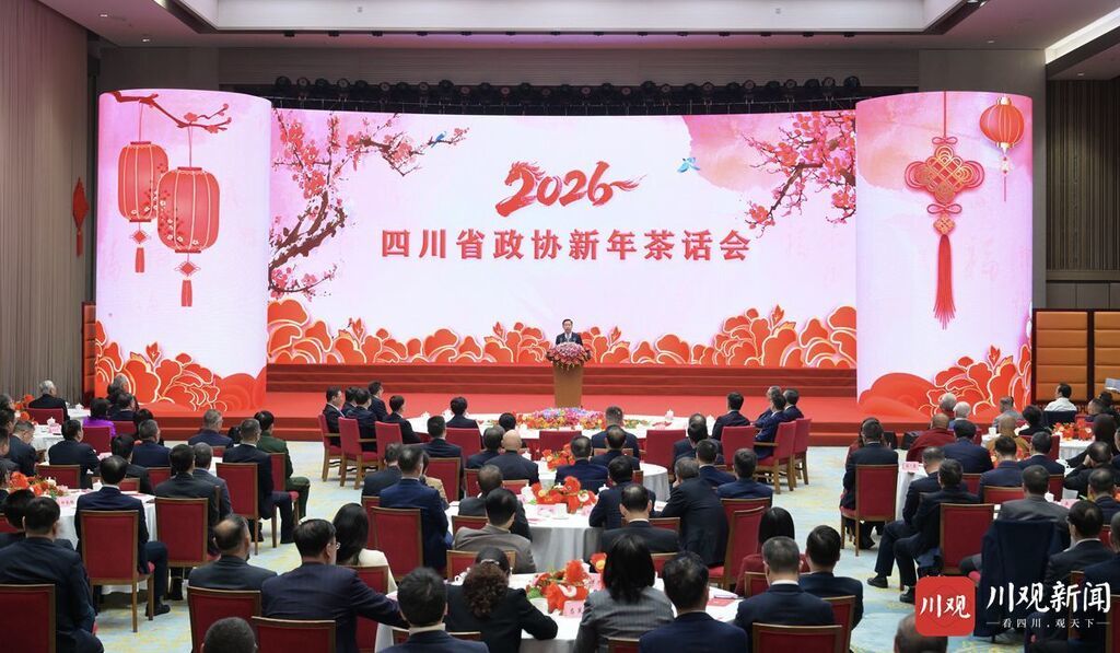 12月31日,四川省政协2026年新年茶话会在成都举行。省委书记、省人大常委会主任王晓晖,省委副书记、省长施小琳,省政协主席田向利,省委副书记、政法委书记于立军等省领导与全省各族各界人士代表欢聚一堂,共迎2026年元旦。