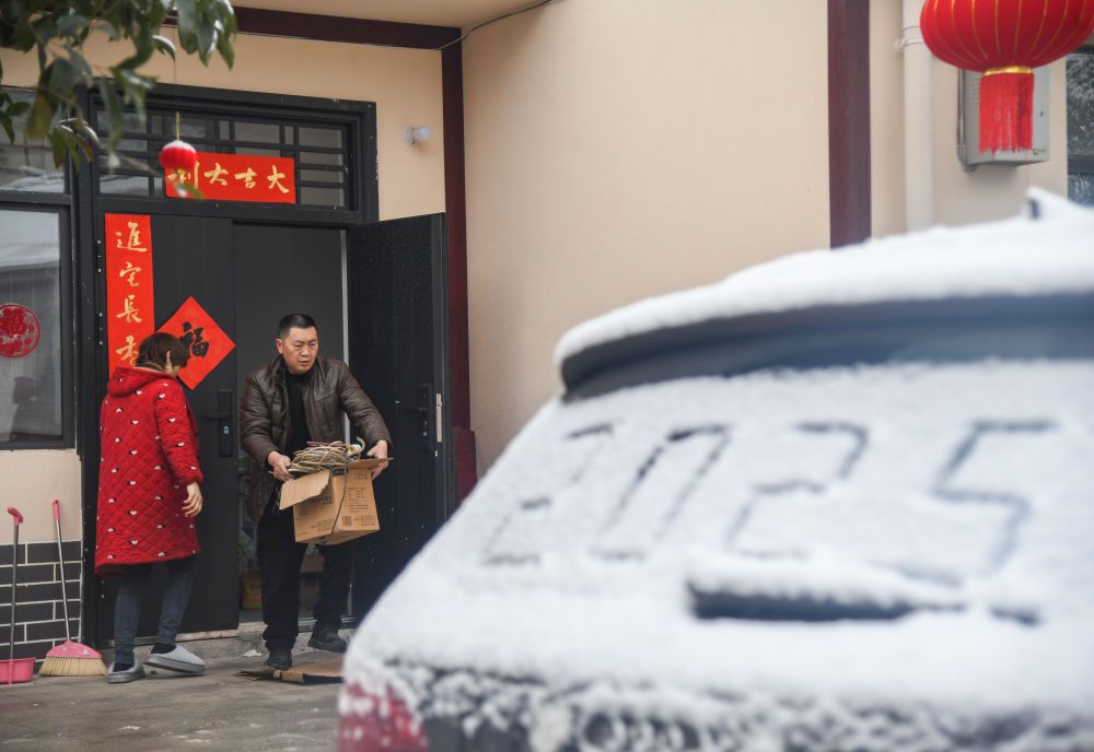 大山深处,雪落无声。夜路上飘着雪花,村民房前的一对对灯笼红彤彤的,温暖的灯光下,村民们在亮堂的新家里围坐在一起,共话来年的新生活。夜渐深,漫天雪花铺满了梦乡中的新华村……