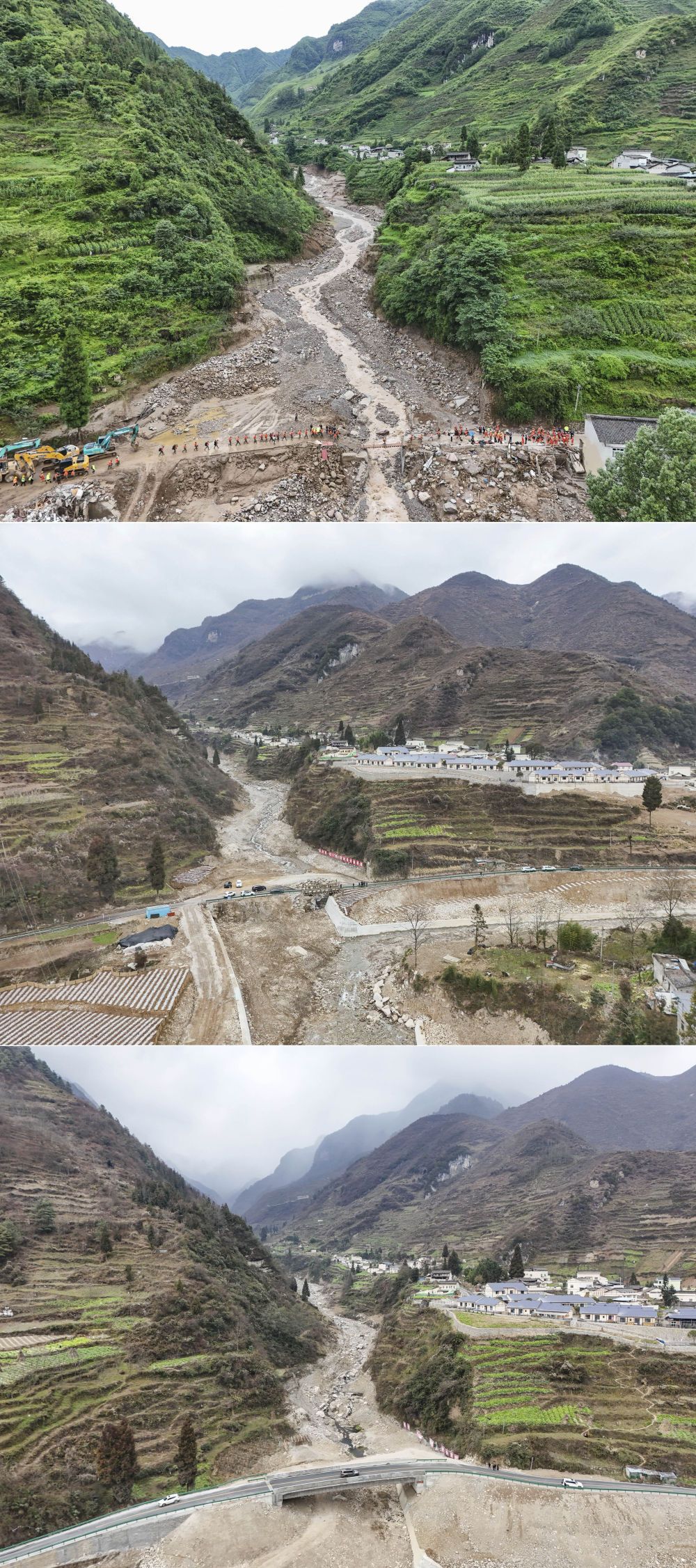 如今,曾作为应急救援“生命通道”的钢便桥已经被新建成通车的公路桥替代,涂着红黄蓝三色标线的四级旅游公路畅通无阻,新规划建设的百亩冷水鱼养殖基地已投入使用,近千亩粮食和经济作物种植基地也已种上了包菜和当归,万头生猪代养示范基地正加快建设……
