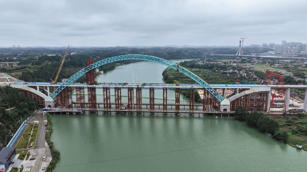 成渝中线高铁四川段沱江特大桥合龙场景