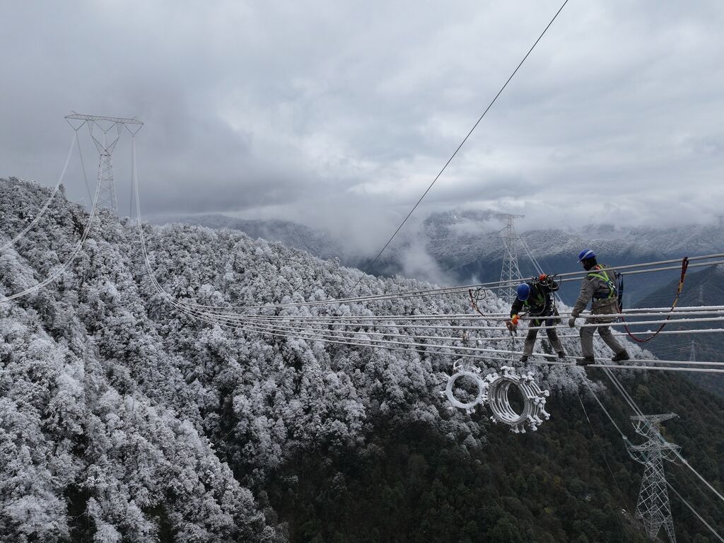 仅需6毫秒,金沙江上游的清洁电能瞬穿1900公里,“闪送”至华东地区的千家万户。2025年12月18日,金上—湖北±800千伏特高压直流输电工程建成投运。这条出川能源大动脉建设历时近3年,海拔4000米以上线路长达248公里,高约65米、重约85吨的铁塔站上海拔4797.9米的巴塘县色烔玛山,创下世界最高海拔特高压工程施工纪录。