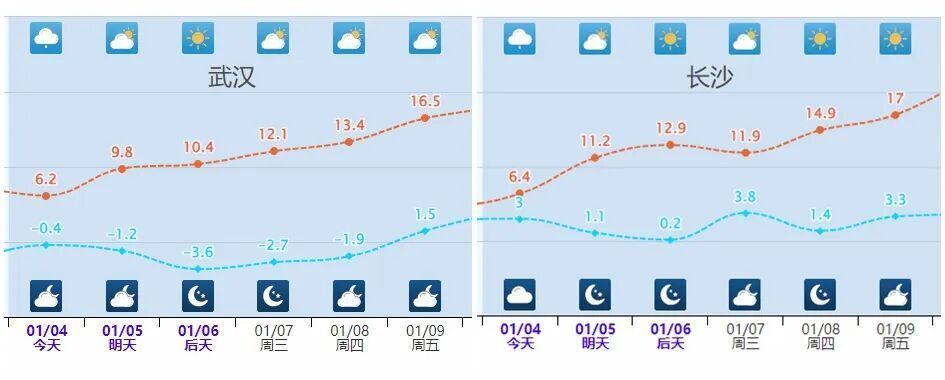 9-10日,气温将达到阶段性高点,最高气温10℃线会北抬至河北中部,南方大部最高气温将超过15°C,较常年同期显著偏暖。像武汉、长沙9日最高气温将达到17°C左右,石家庄、西安、郑州最高气温也可能超过10°C。