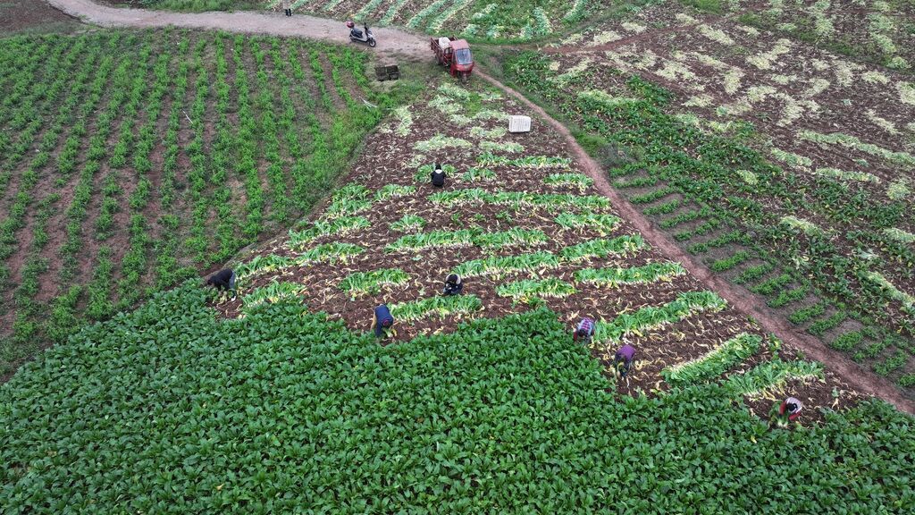 村民在大头菜田里干活。