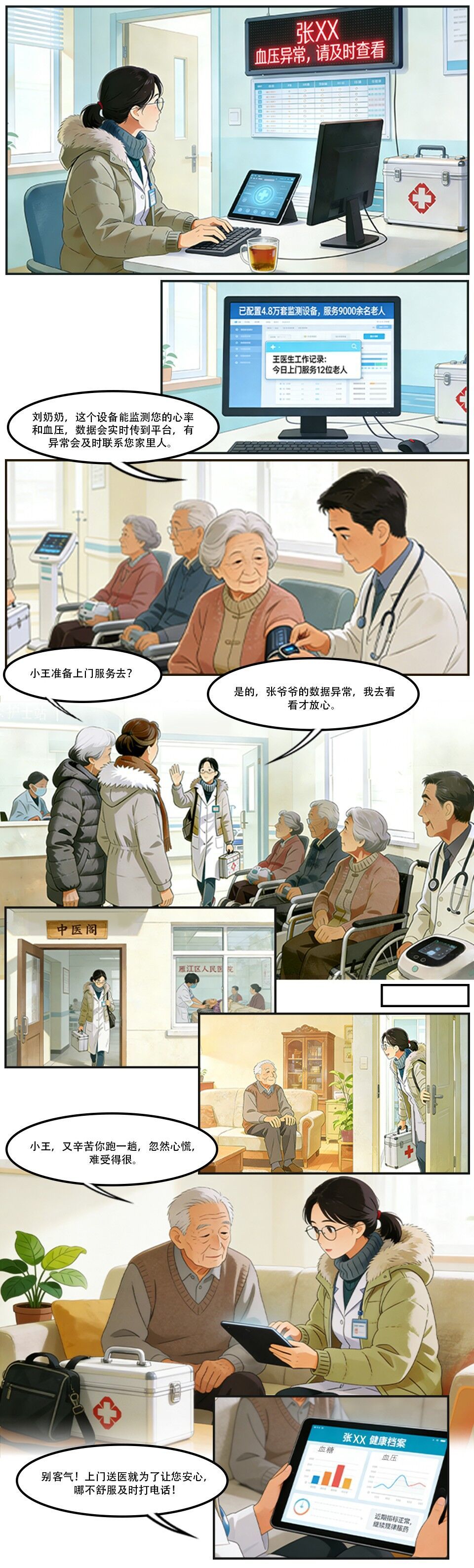 智慧诊疗候诊零等待,家庭医生上门送服务,康养平台守护夕阳红。