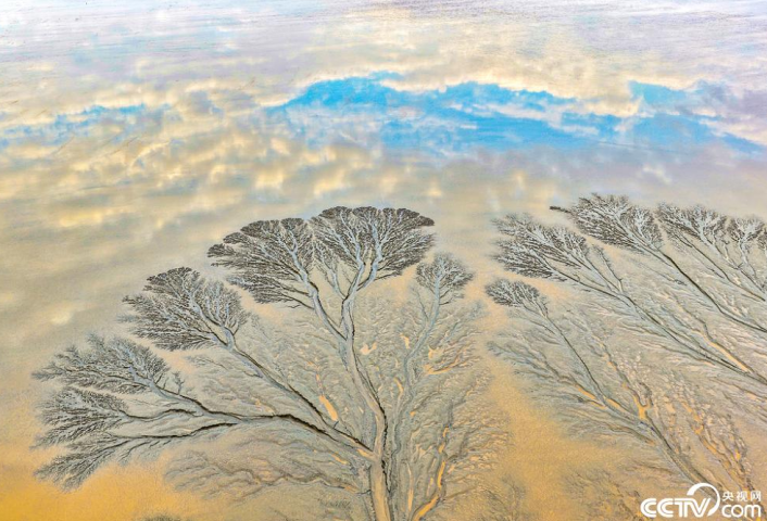 近日,浙江海宁钱塘江黄湾镇段现罕见潮汐树景观。霞光染红江面,绘就壮美自然画卷。