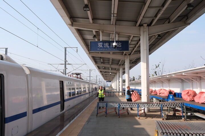 面对物流高峰,高铁快运运力持续加码。今年“双11”期间,中国国家铁路集团有限公司投放1700余列高铁动车组、37列确认列车及多趟快运班列,构建起一张覆盖339个车站的高铁快运网络。同时,持续优化“高铁急送”“高铁专人送”等个性化便民服务,让高铁快运既通大宗物流、也惠百姓民生。