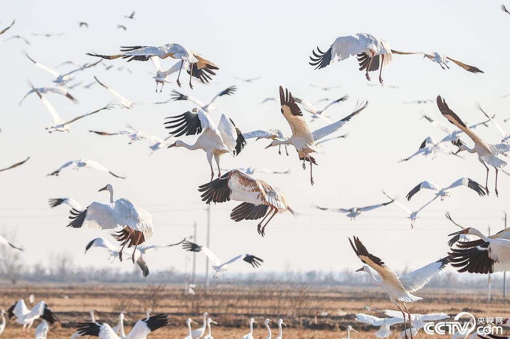 江西余干:鄱阳湖畔越冬候鸟翔集。
