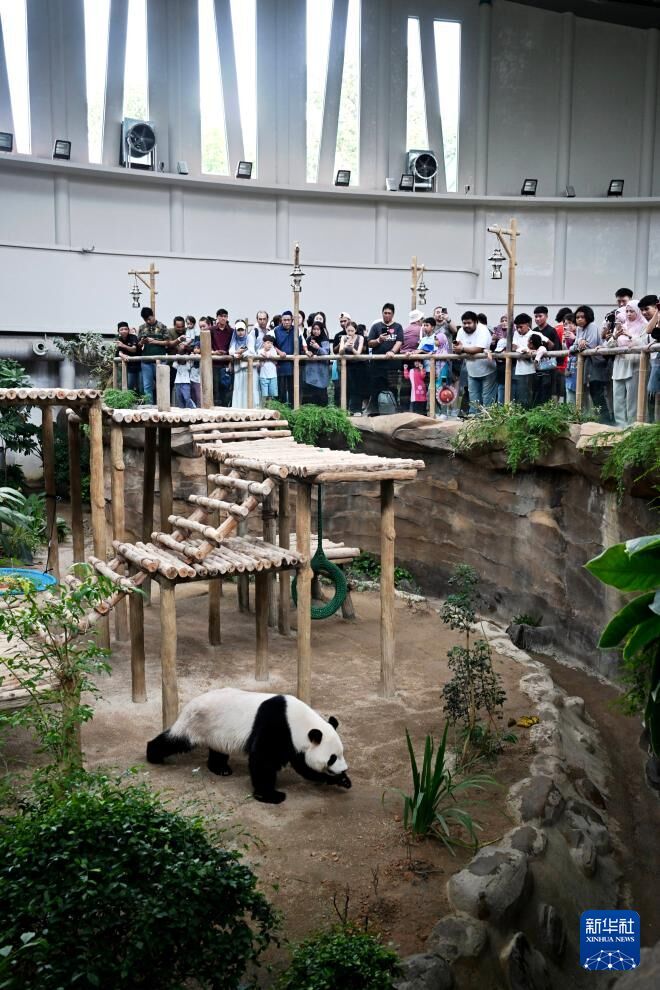 当天中午,不少民众在大熊猫保护中心外排起长队,翘首以盼。“这是近距离看到这些珍稀动物的绝佳机会。”当地民众茜提·阿西玛说。
