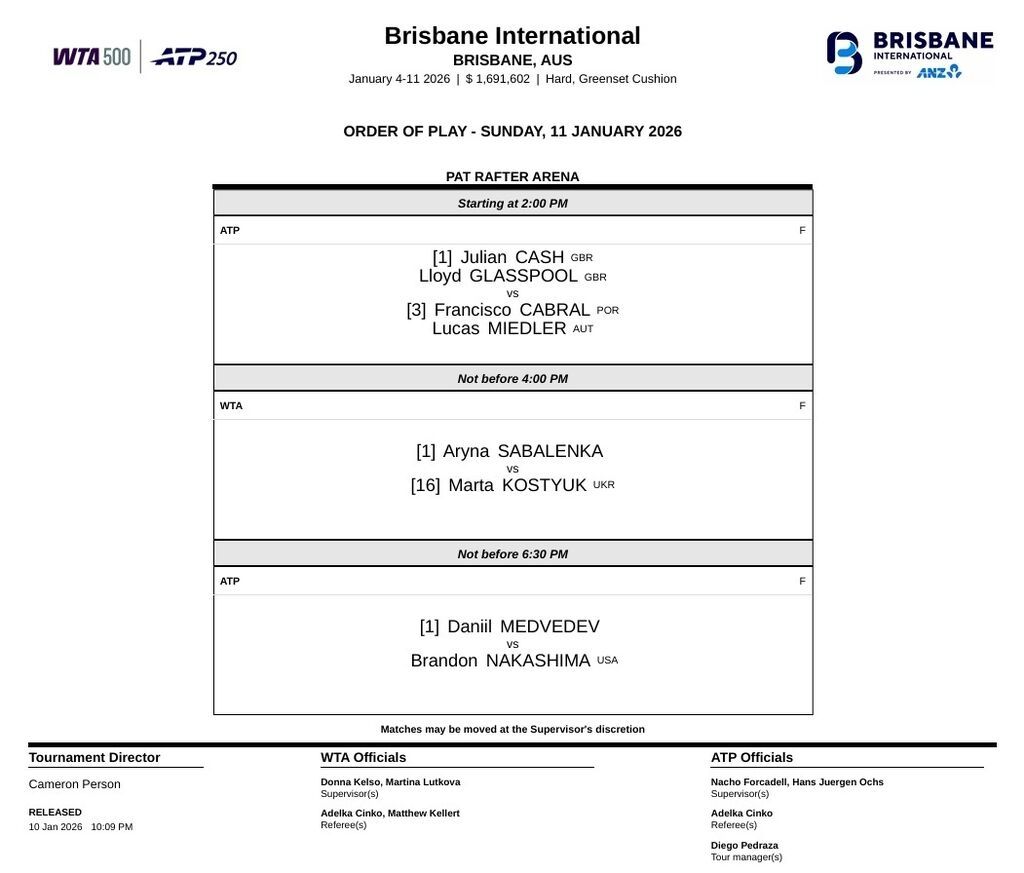不早于14:00 萨巴伦卡 vs 科斯秋克