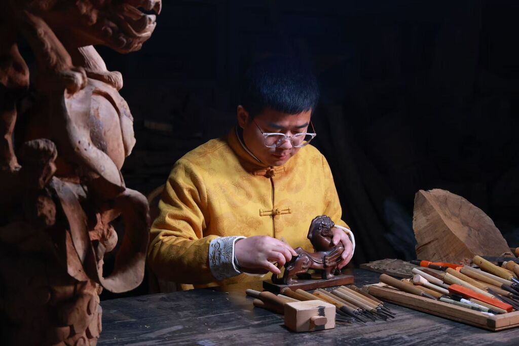 “先用3D打印做出设计模型,再在木头上进行创作,效率和精度都提高了。”何飞说,他最近正在创作“青城山下白素贞”等本地文化主题的浮雕文创,“让木雕走进更多年轻人的生活。”