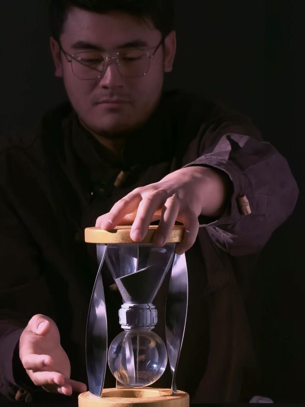 传统器物如紫砂壶、印章等方案先后被否,“因为那样就看不出来月壤本身的样子了”。最终,沙漏的构想被确定下来——沙漏是中国古代就有的计时器,而复刻月壤制成的沙用以计时正好合适。刘玉将沙漏设计为5分钟流尽。