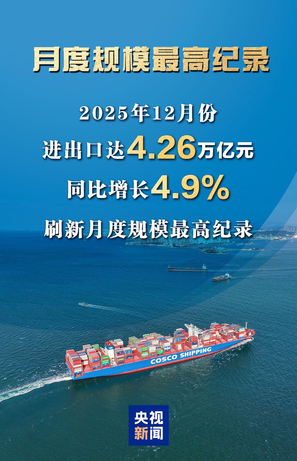 据海关统计,2025年我国外贸进出口达45.47万亿元,增长3.8%。其中,出口26.99万亿元,增长6.1%;进口18.48万亿元,增长0.5%。一组图看我国2025年外贸进出口成绩单↓
