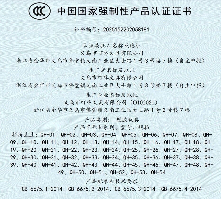 记者注意到,相关机构提供的关于拼豆的产品认证证书,将其列入塑胶玩具产品类别。记者咨询的质检专家指出,目前针对儿童玩具的强制性产品认证实施规则CNCA-C22-02:2020,主要聚焦于机械、易燃、特定元素迁移等安全项目。记者查阅资料了解到,在相关标准中,比如今年11月1日将实施的新的玩具安全标准GB6675.1—2025,增加了对邻苯二甲酸酯、甲醛、偶氮、多环芳烃、亚硝胺、甲酰胺、短链氯化石蜡、各种挥发性有机化合物和总挥发性有机化合物的释放以及致敏香料的要求,同时明确该玩具安全标准不适用额定电压超过24V的电烘箱、电熨斗和其他功能性产品,但上述部分商家介绍,其提供的熨斗电压为220V。
