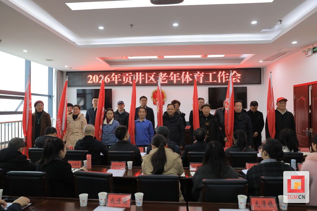 1月14日上午,贡井区召开2026年老年体育工作会。会议总结了2025年全区老年体育工作,安排了2026年重点任务。同时,举行了“新时代自贡市贡井区老年人体育银龄行动志愿服务队”授旗仪式,向广场舞、健身秧歌、太极拳、门球等16支项目队授旗。
