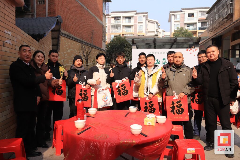 冬日阳光暖暖地洒在院坝里,红色桌凳映衬出一片喜庆。蒸笼高高摞起,锅灶热气蒸腾,空气中满是诱人的饭菜香。1月14日,一场温馨的“迎新暖心·聚新同行”坝坝宴在荣县旭阳镇附东街社区热闹开席。