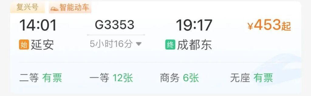 G3353延安→成都东