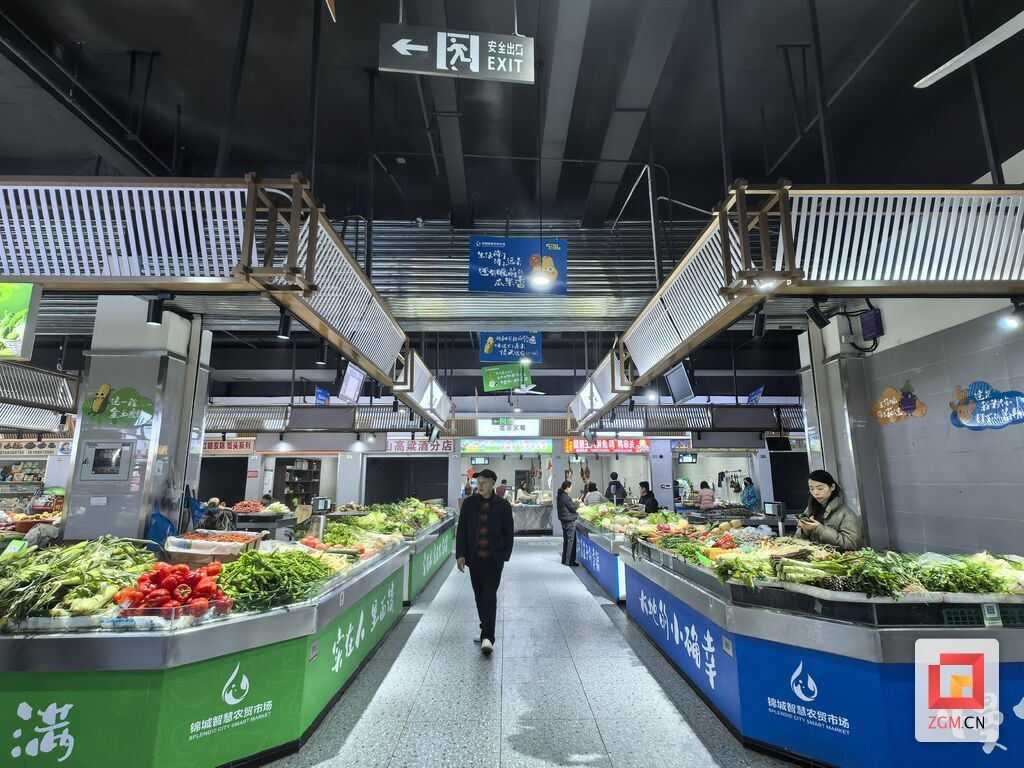 新建的锦城智慧农贸市场更让市民感受到了文明升级的质感。4000余平方米的市场内明亮通透,专业通风系统驱散了传统农贸市场的异味,350个地上地下停车位彻底解决了“买菜停车难”的痛点。更具特色的是,每个摊位均配备电子显示屏,实时公示商户资质、商品价格及溯源信息,消费者扫码即可查询食材产地与检测报告,让消费更透明、更安心。“现在买菜像逛超市一样方便,而且能看到食材溯源信息,给家人做饭也更放心了。”正在选购鲜肉的市民张先生告诉记者,市场的智慧化改造和整洁环境,让他的采购体验提升了不止一个档次。