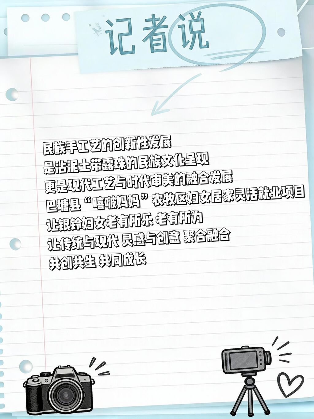 2025年9月,“嘻啵妈妈”工艺品牌正式进驻杭州“华藏”文化数字版权交易平台,首批上架5000份手工文创产品,交易额达到99万元,这其中就有四郎翁姆与妈妈学员们贡献的一份力。民族手工艺的创新性发展,是沾泥土带露珠的民族文化呈现,更是现代工艺与时代审美的融合发展,巴塘县“嘻啵妈妈”农牧区妇女居家灵活就业项目,让银龄妇女老有所乐、老有所为,让传统与现代、灵感与创意聚合融合,共创共生,共同成长。