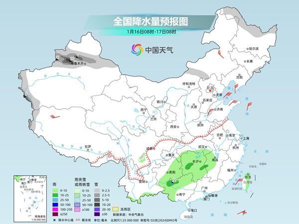 中国天气网讯 今天(1月16日)是三九最后一天,我国大部将持续偏暖;明天随着四九开场,一场寒潮来袭,中东部大片地区将经历冷暖逆转。与此同时,雨雪天气也将增多,黄淮、江淮等多地将现较强降雪, 湖南、贵州等地部分地区或现冻雨。