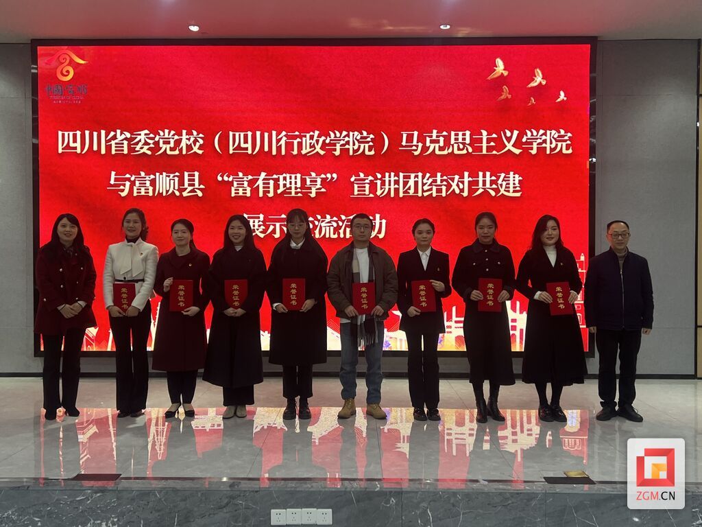 随后,出席活动的领导为8位宣讲选手颁发了纪念证书,并合影留念。此次结对共建展示交流活动,是四川省委党校马克思主义学院发挥理论科研优势与富顺县“富有理享”宣讲团深耕基层实践优势相结合的重要举措,有效促进了优质理论资源下沉,提升了基层宣讲队伍的专业化水平和理论联系实际的能力。活动不仅是一次精彩的成果展示,更是一次深入的业务练兵与合作深化。(李旭)