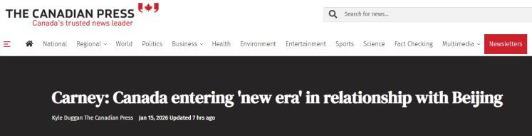加拿大总理卡尼1月14日至17日对中国进行正式访问。1月16日,中加两国领导人会见,多家外媒高度关注。