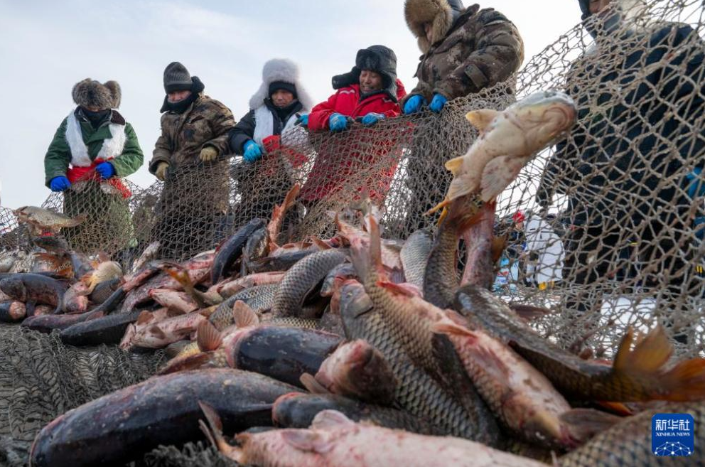 1月17日,2026兴凯湖冬捕节在中俄界湖兴凯湖畔启幕。人们在现场共同见证千米大网破冰而出,万鱼腾跃竞逐的震撼场景,感受传承千年的肃慎渔猎文化,体验北国边境冰雪文化独特魅力。
