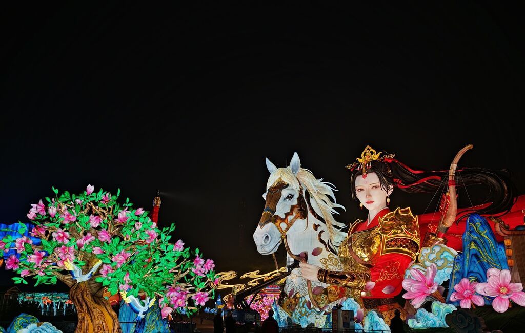2026自贡灯会“木兰传奇”灯组长达180米,将木兰英姿与骏马奔腾巧妙融合。郑勇 摄