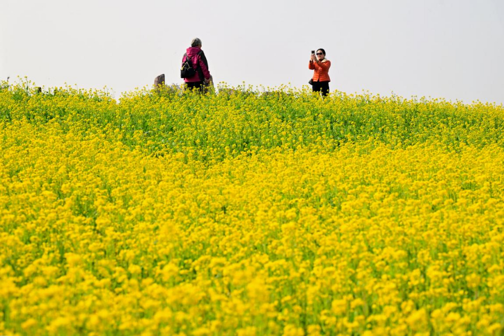 1月18日,在位于义乌市义亭镇的森山健康小镇内,大片油菜花在冬日里迎春绽放,美不胜收。