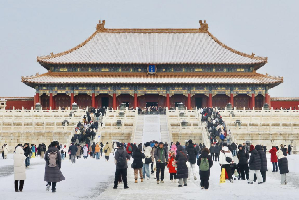 1月18日,北京,雪后故宫美景如画。