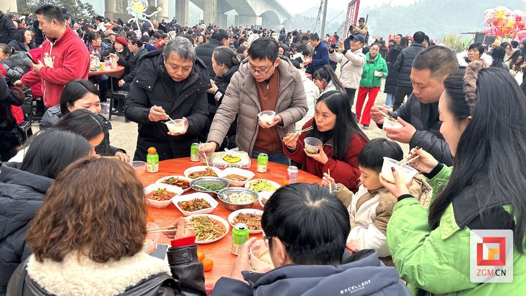 活动选址于狮市镇花园坝,毗邻长势喜人的油菜花田,自然景致与民俗氛围相得益彰。现场搭设百余桌宴席,吸引上千名群众参与,灶火熊熊、汤香四溢、乡音萦绕,勾勒出一幅鲜活生动的乡村年俗画卷。为保障活动有序开展,当地政府提前部署,安排工作人员与志愿者到场协助引导群众、维护现场秩序,在热闹祥和的氛围中筑牢安全防线,确保活动圆满举行。