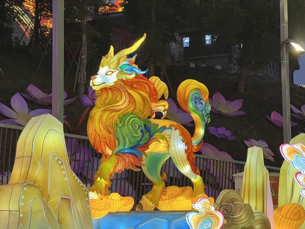 这组彩灯以“非遗材质的生命力”为核心,用辣椒、瓷器、药瓶、稻草、扭扭棒、泡沫、吹塑纸等七类非遗材质,分别塑造形态各异的瑞兽,通过“材质的叙事性”与“技艺的多样性”,展现“瑞兽贺春”的传统意境,诠释“万物有灵、匠心归一”的深层内涵。