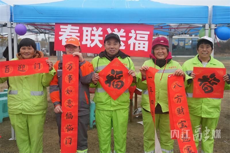 当天下午,活动现场处处洋溢着传统年节的喜庆氛围。环卫工人们不仅品尝到地道的“刨猪汤”等传统年味佳肴,还欣赏到了富有内江特色的文艺表演,并参与到抬年猪、滚铁环、踢毽子等怀旧游戏中,欢声笑语不断。参与活动的志愿者现场挥毫,将一句句吉祥祝福,写成春联与“福”字赠予环卫工人;同步开展的义诊、义剪等便民服务,更是从细节处体现了体贴入微的关爱。