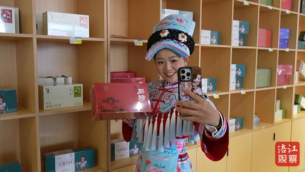 回到石椅村这几年,陈新一积极推动“非遗进院落”活动,将草编、羌绣、手工制茶等非遗体验点位融入乡村旅游,让游客在感受自然风光的同时,也能亲手触摸羌族文化的温度。为了让石椅村的形象更具辨识度,她还参与设计了以石椅寨门为主体的Logo,并开发了抱枕、帆布袋、水果包装等十余种文创产品,让羌寨元素走进更多人的生活。