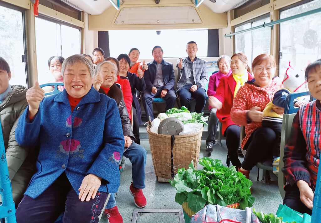 这趟往返于城区和乡镇之间的“果蔬公交”车上,车厢里堆满了冬笋、柑橘、柚子、蔬菜等农特产品,村民们聊着家常,一路向着城区进发。中午时分,卖完菜的村民又背着采购的年货、生活用品返程。