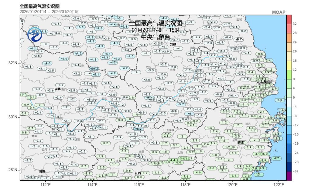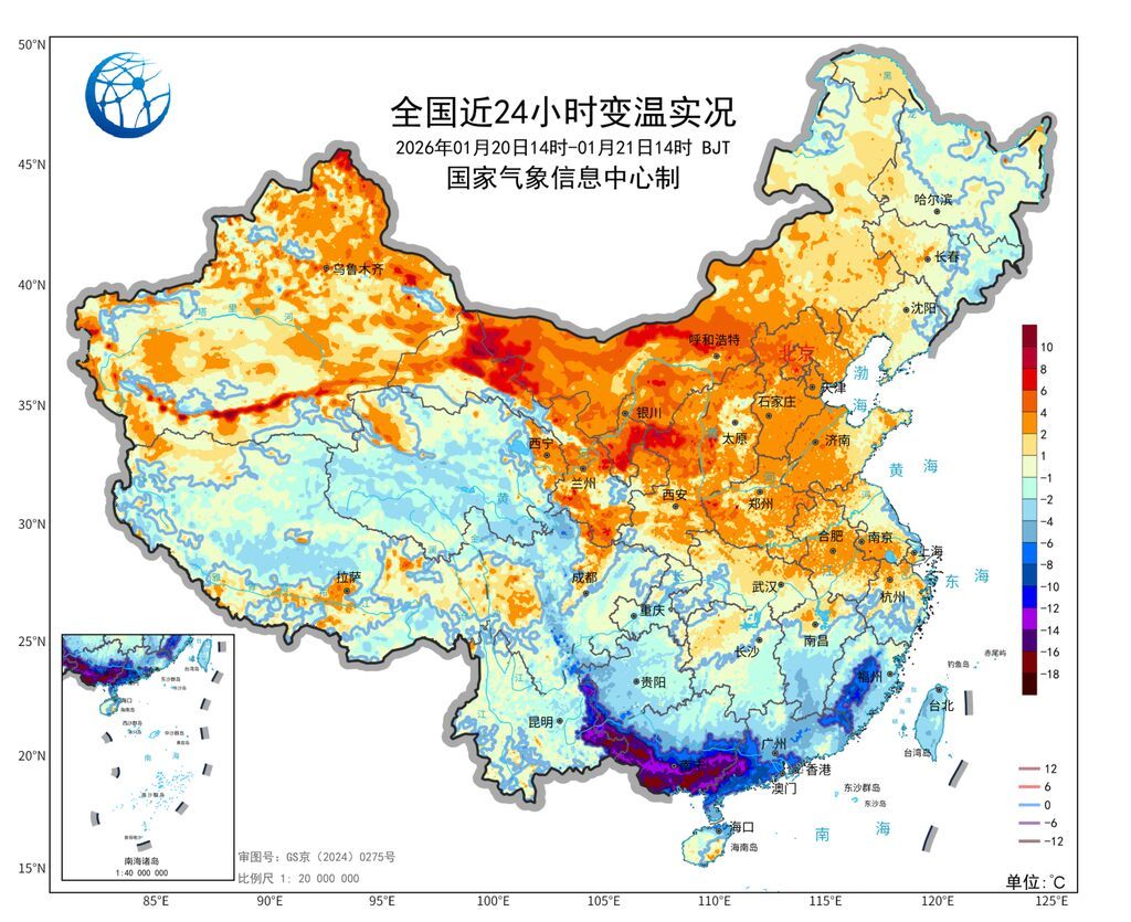 今天,长江以北地区的寒意稍有减弱,多地气温有所回升。而长江中下游地区寒意明显,广西南部和云南东南部在寒潮的影响下也出现剧烈降温,部分地区降温达15℃以上。