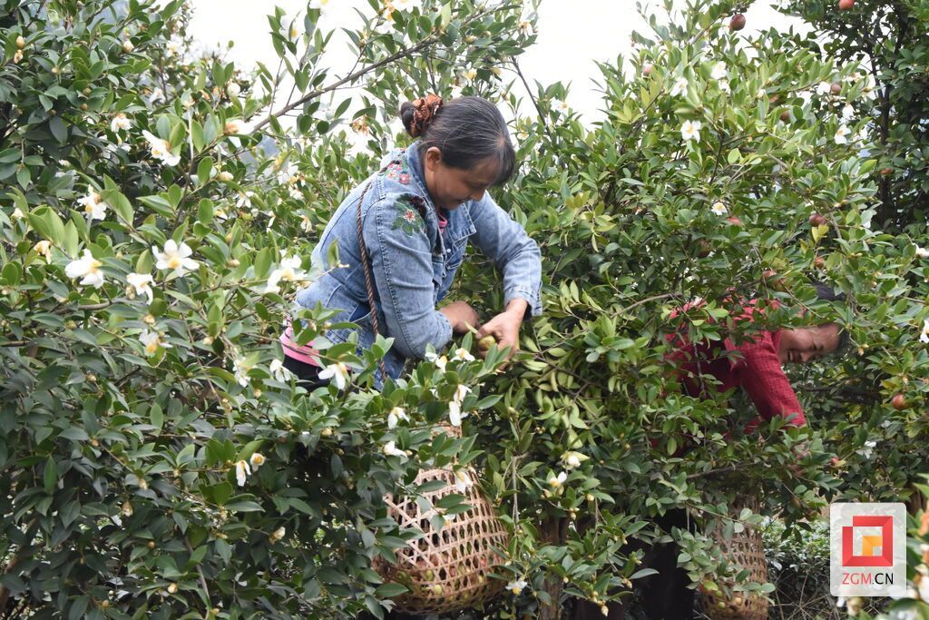 在度佳镇,种植油茶的农户就有5000来户,全镇近2万亩油茶林,就是以白坡村为中心,造出了一个天然的“茶花谷”,每年10月下旬,当青红色的茶果和洁白如雪的茶花同树献礼时,这里成为了丰收与观光同频的焦点。